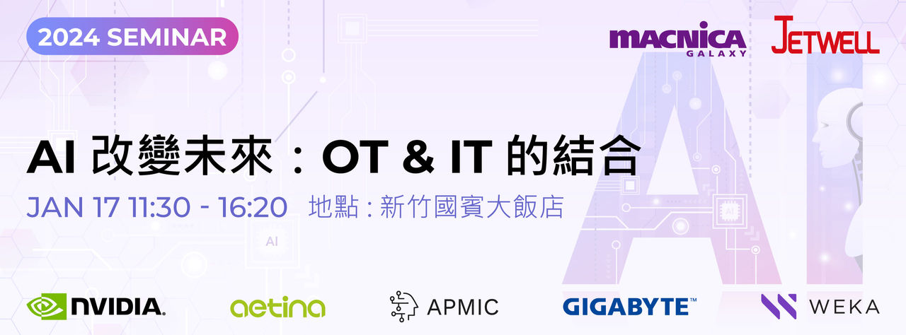 茂綸此次與大綜電腦、WEKA、Aetina、GIGABYTE、亞太智能,聯合主辦此次的「AI 改變未來研討會」,針對 AI 在製造業的的應用,結合OT與IT,提供Total Solution。這次的AI方案探討,包含了Server、Storage、Edge與架構模型,讓各位產業先進對AI的實務有更進一步的認識。