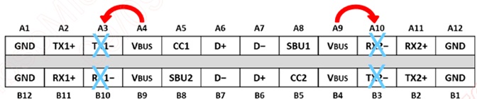 圖(一). USB Type-C 端口腳位短接示意圖